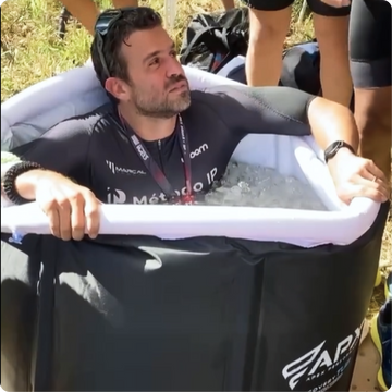 A Recovery Tub é uma banheira portátil para imersão no gelo, utilizada para acelerar a recuperação muscular e reduzir inflamações após o treino.